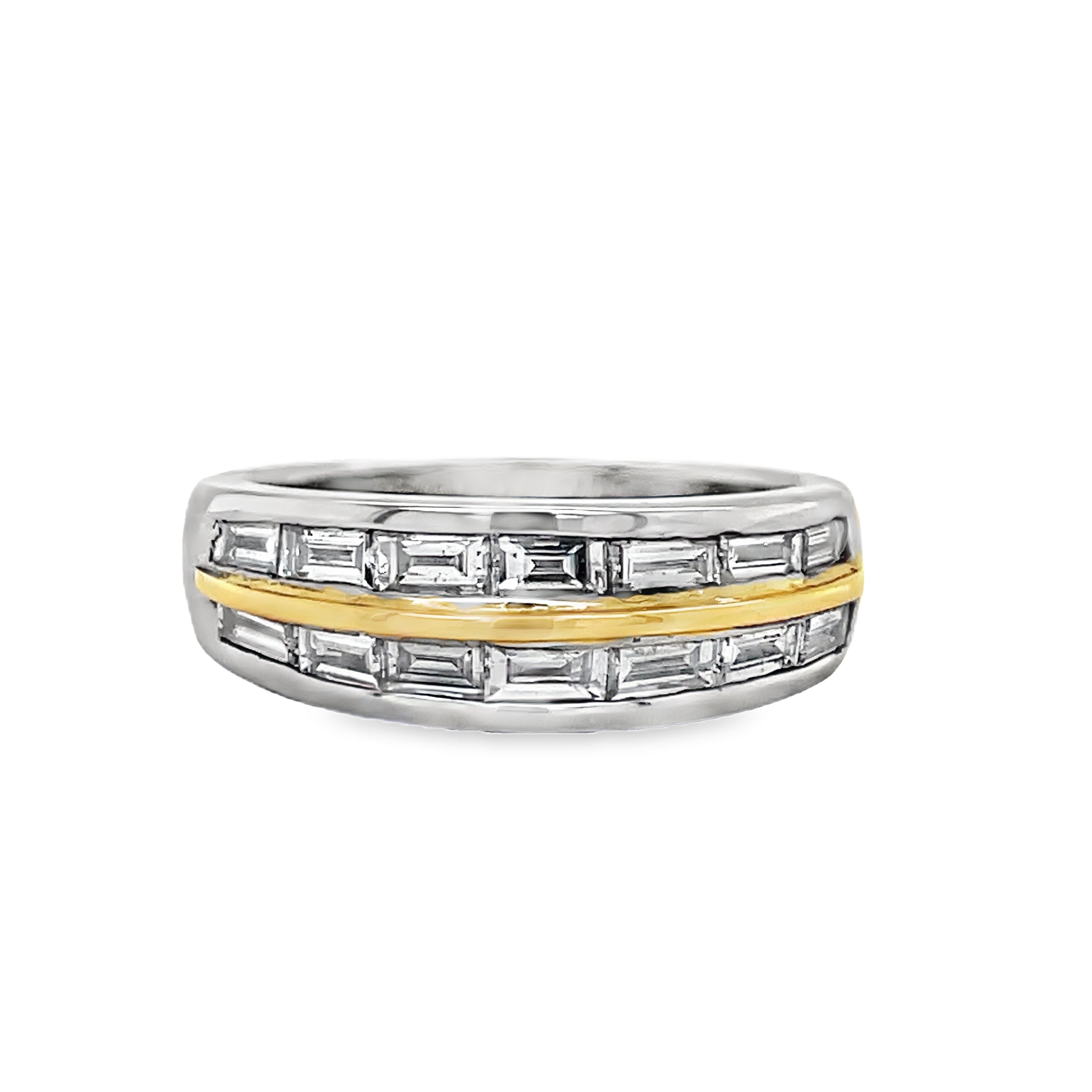 Two Tone Anniversary Baguette Diamond Double Row Band
