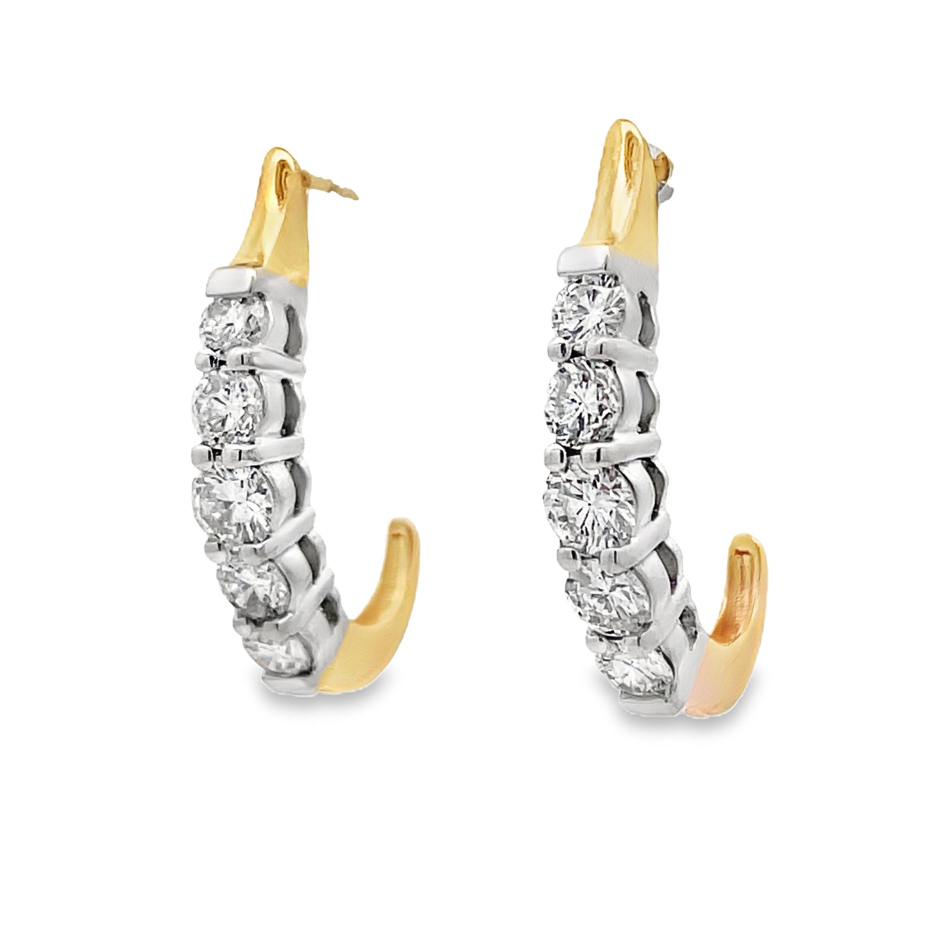 Two Tone Diamond Sleek Hoop Earrings 1.50 cts