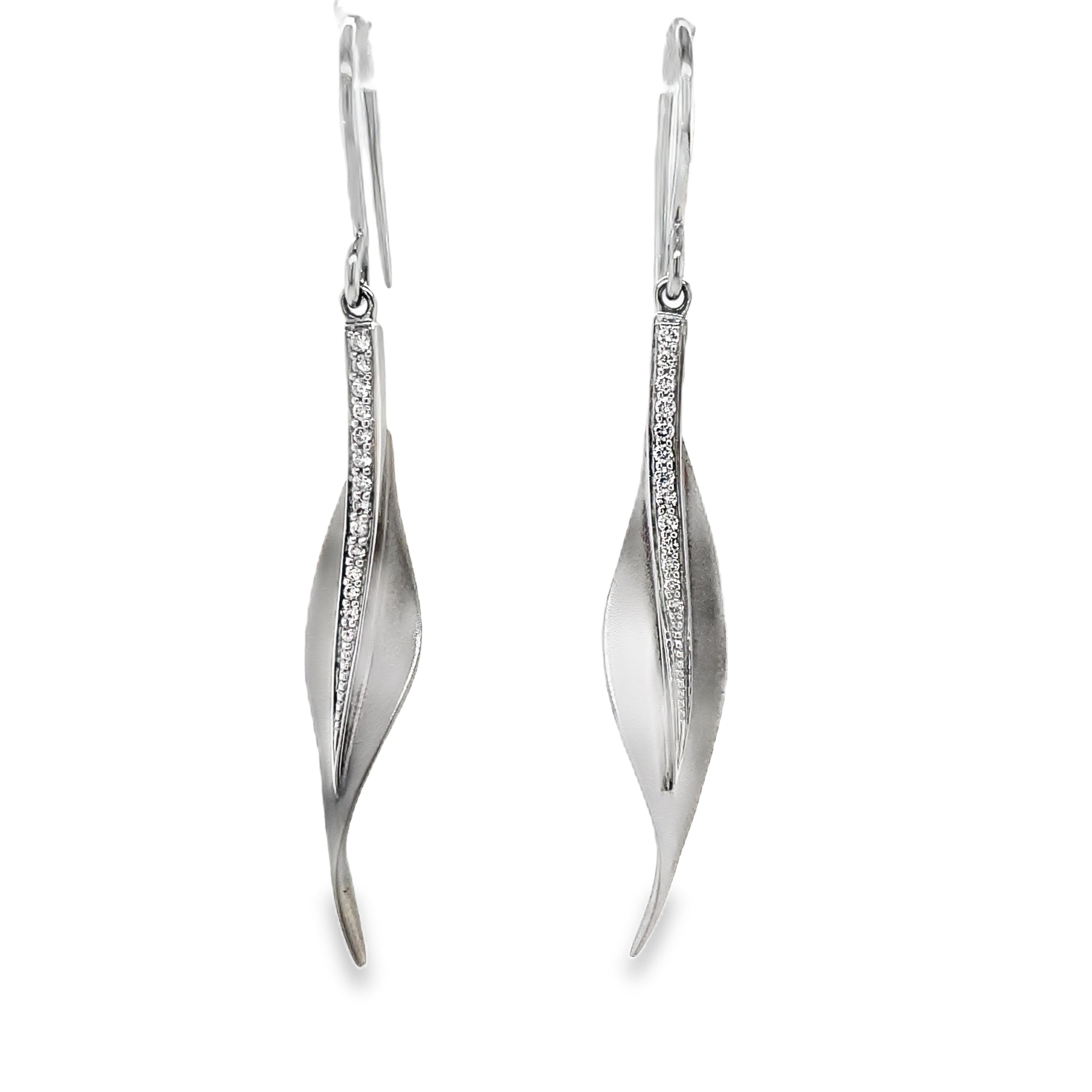 18k Italian White Gold Diamond Square Motif Twisted Rope Stackable Ring